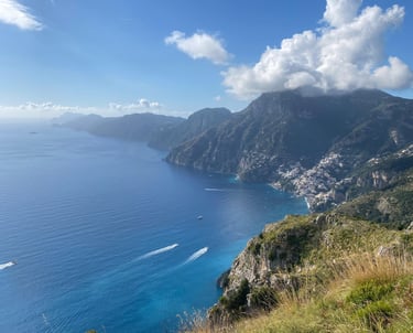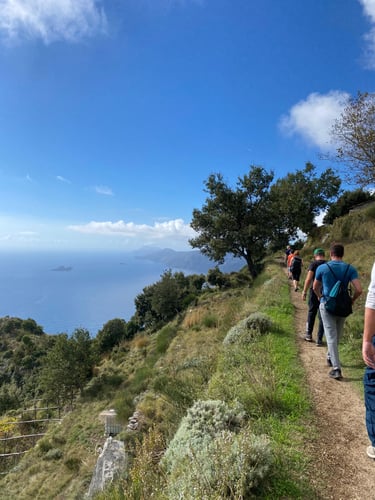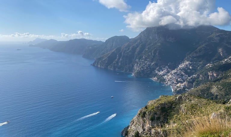 Il famoso percorso della Costiera Amalfitana che collega Praiano a Positano. Viste spettacolari su mare, montagne e borghi arroccati. Un'esperienza che giustifica il nome: camminare tra cielo e mare, sospesi tra le nuvole.
